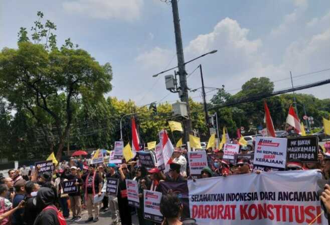 Massa gelar aksi di area Gedung KPU jelang penetapan capres-cawapres