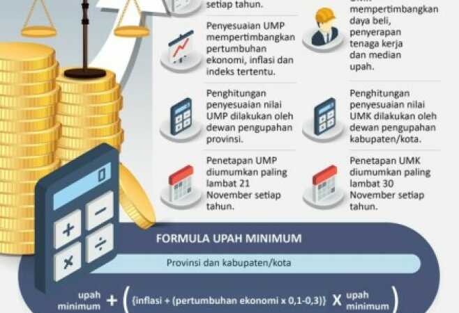 Pemerintah menerbitkan peraturan baru yang memastikan kenaikan upah minimum provinsi (UMP) dan upah minimum kabupaten/kota (UMK) setiap tahun dengan sejumlah pertimbangan. Peraturan ini mulai berlaku 10 November 2023.