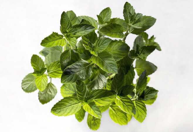 Tambahkan 1 sendok teh daun spearmint kering atau beberapa lembar daun segar.